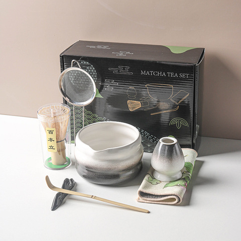 Oem ODM 4 đến 9 cái Matcha Bộ quà tặng bao bì và phụ kiện Nhật Bản tre Whisk bát gốm Matcha Whisk Kit Set cho buổi lễ